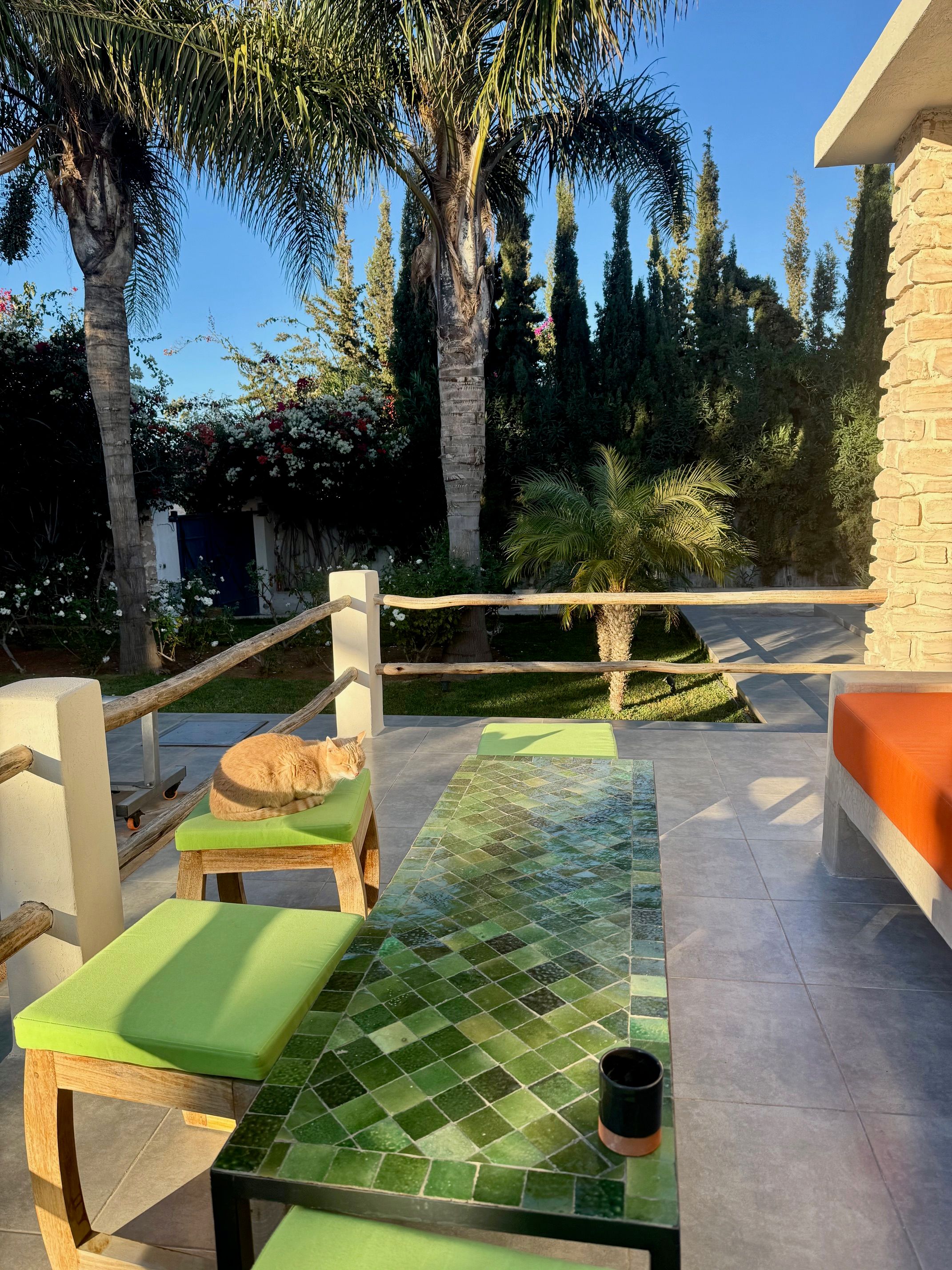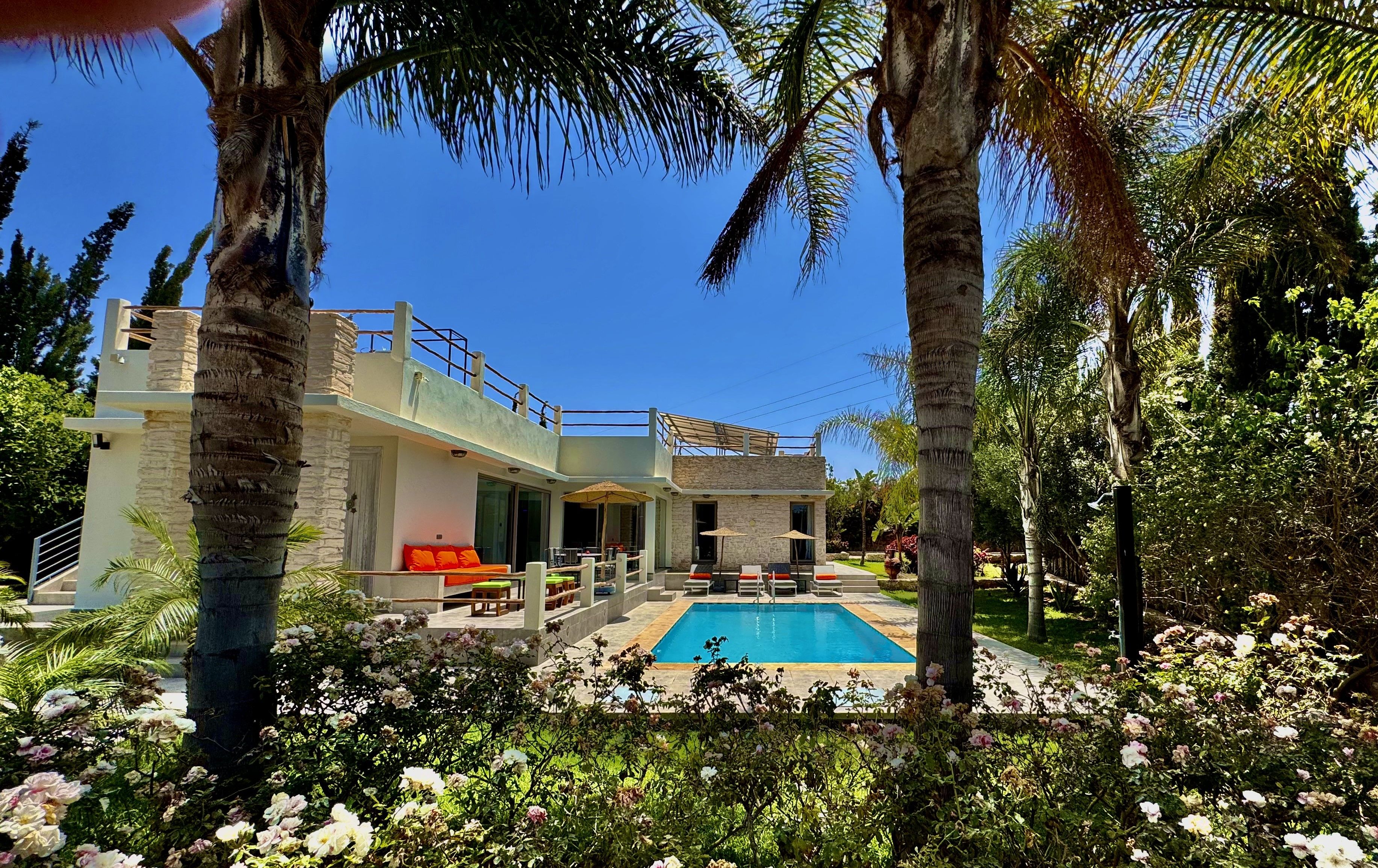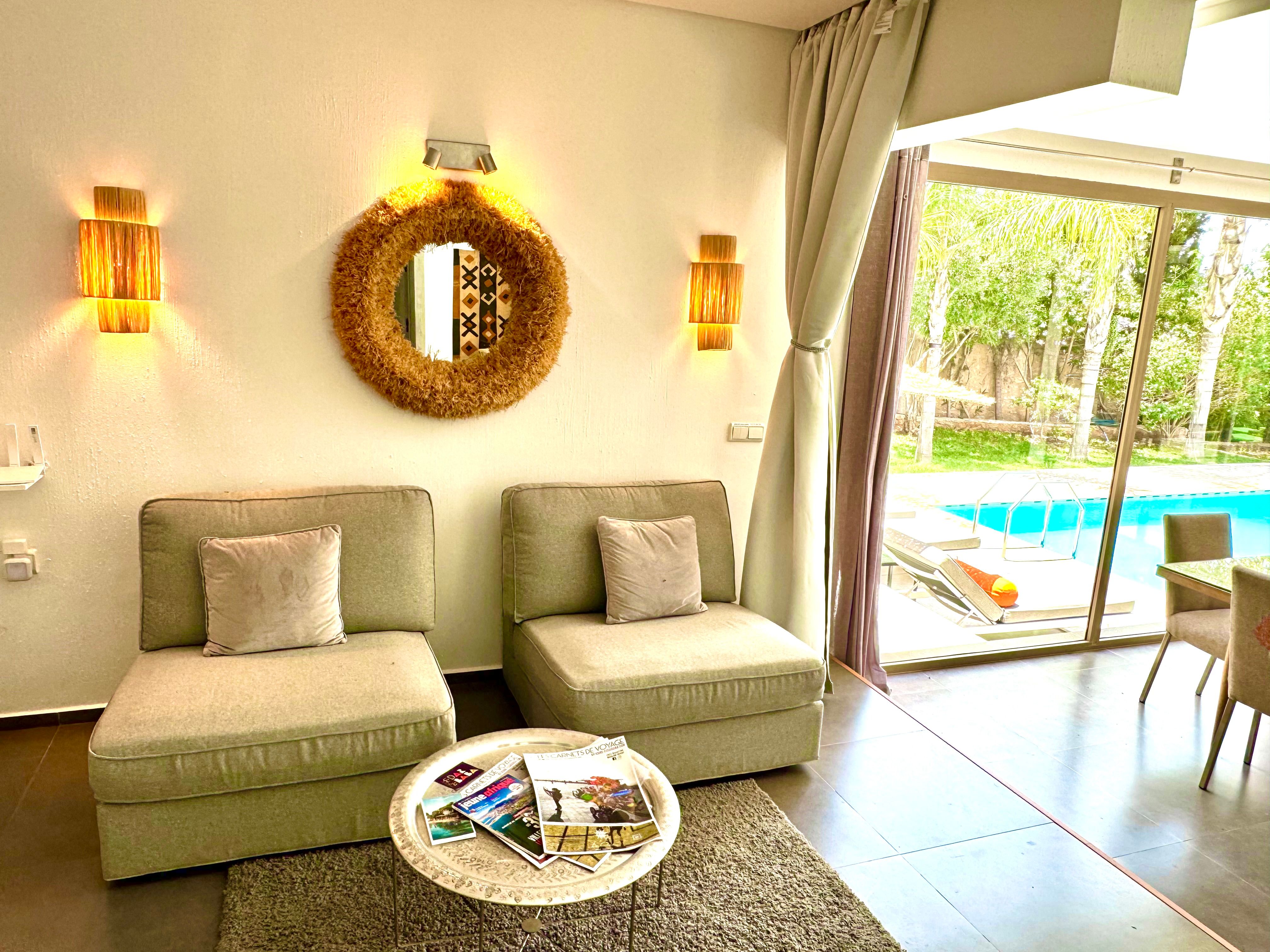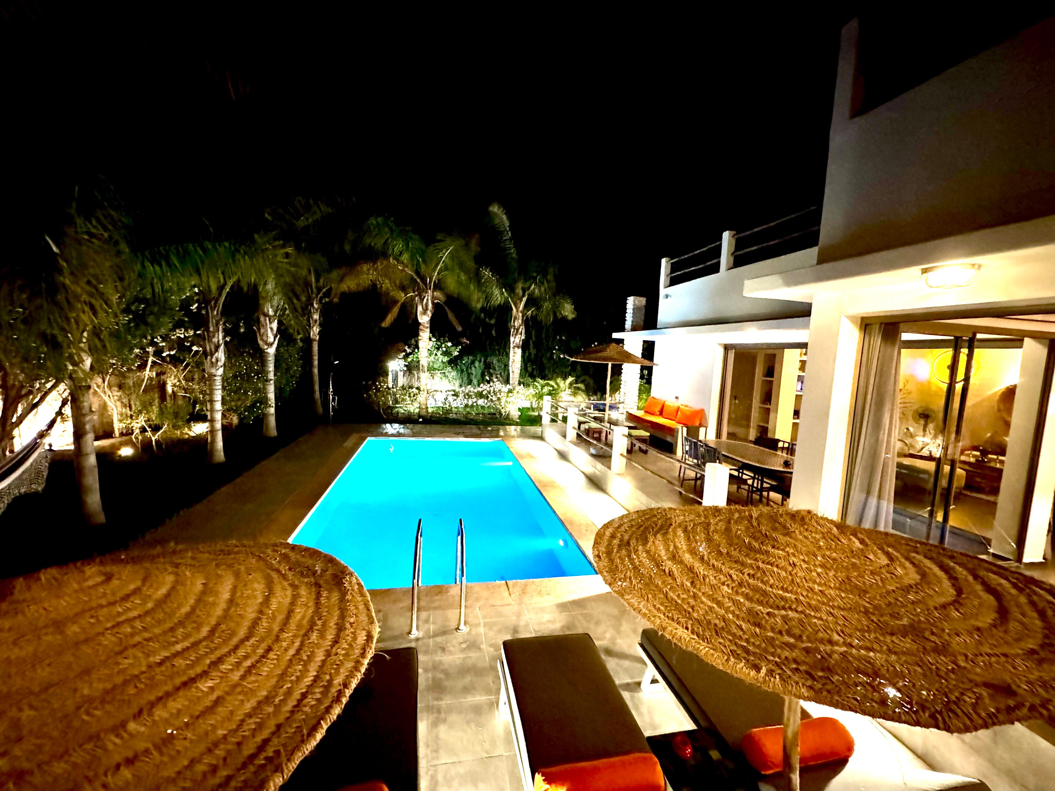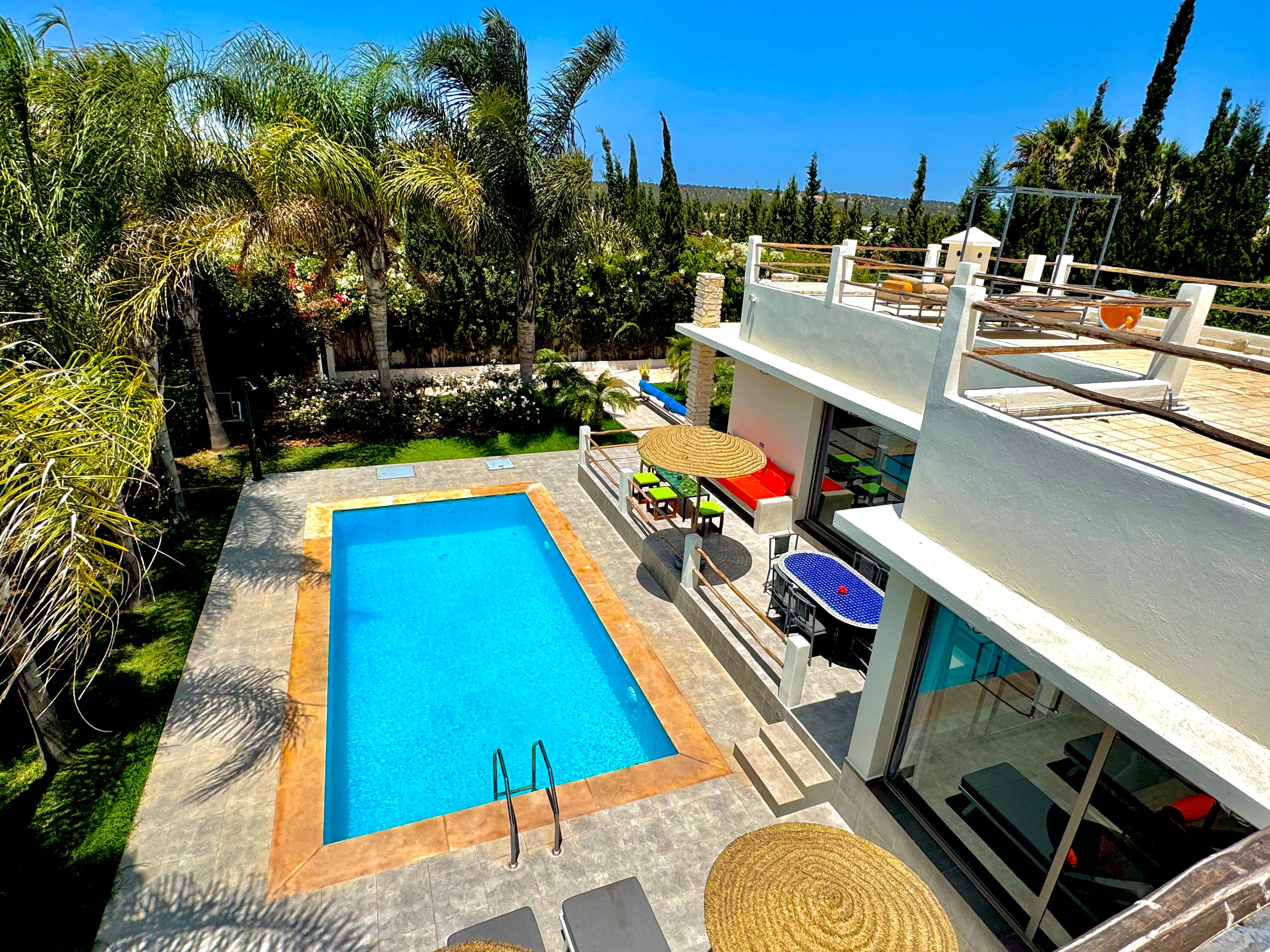 La Villa Mila à Essaouira est un hébergement de luxe et tout confort pour 6 personnes au cœur d'un jardin luxuriant, 3 chambres climatisées avec Tv satellite, 3 salles de bain, 4 WC, une cuisine super équipée et un salon moderne avec cheminée et télé multicanaux, Netflix... Elle offre un cadre idéal pour des familles ou des groupes d'amis avec des services complémentaires comme le ménage, les petits déjeuners, cuisine, massages à domicile, parking gratuit, et un accès proche des plages et des atmosphères magiques de la Médina: ses habitants, ses couleurs, ses restaurants, son artisanat, son port de pêche… et ses activités: golf, padel, kite surf, équitation, quad, excursions 4x4 et Renault4, hammams...