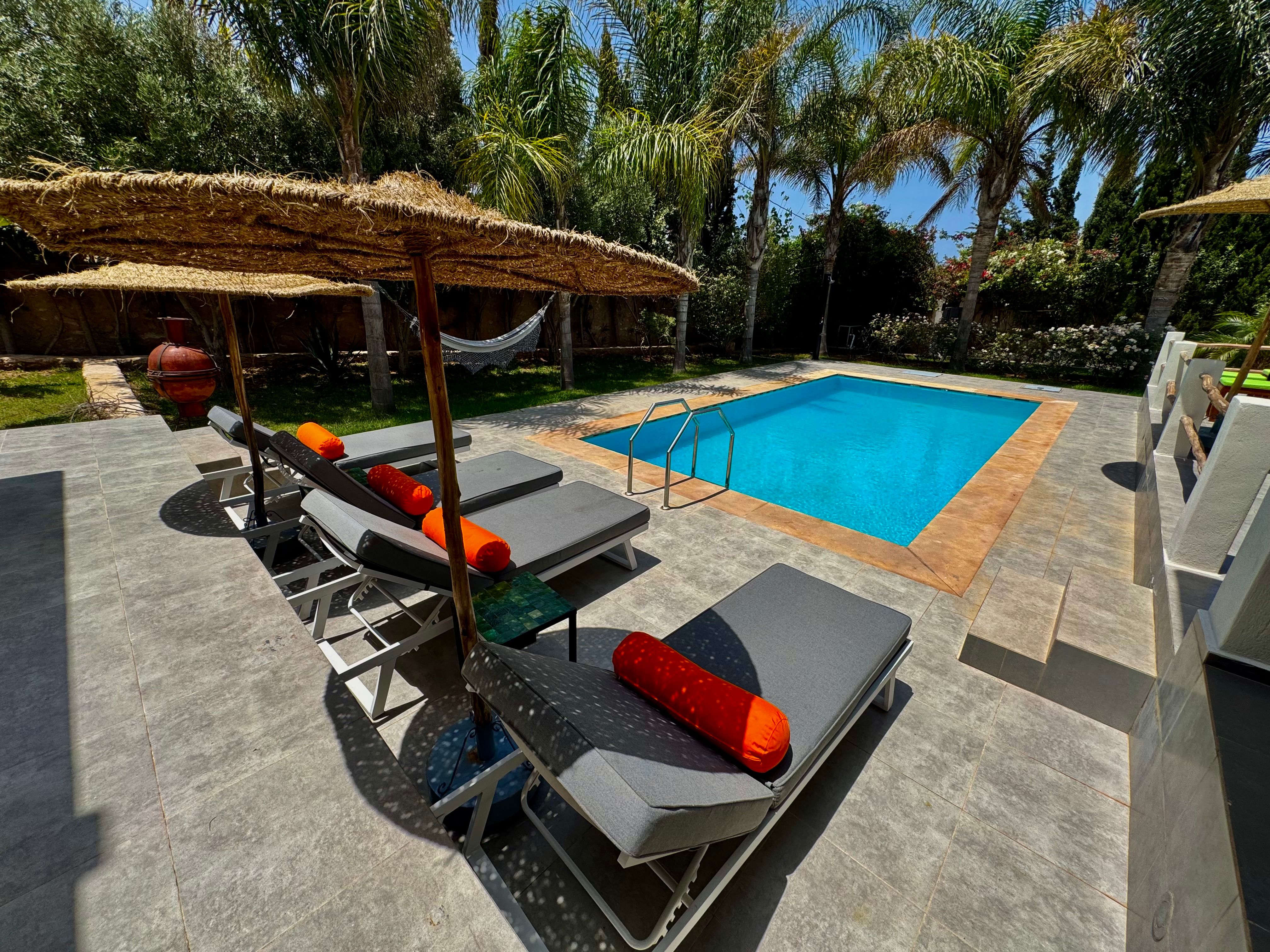 - Piscine chauffée*: Terrasse, Transats, Hamac, Serviettes de plage, Parasols