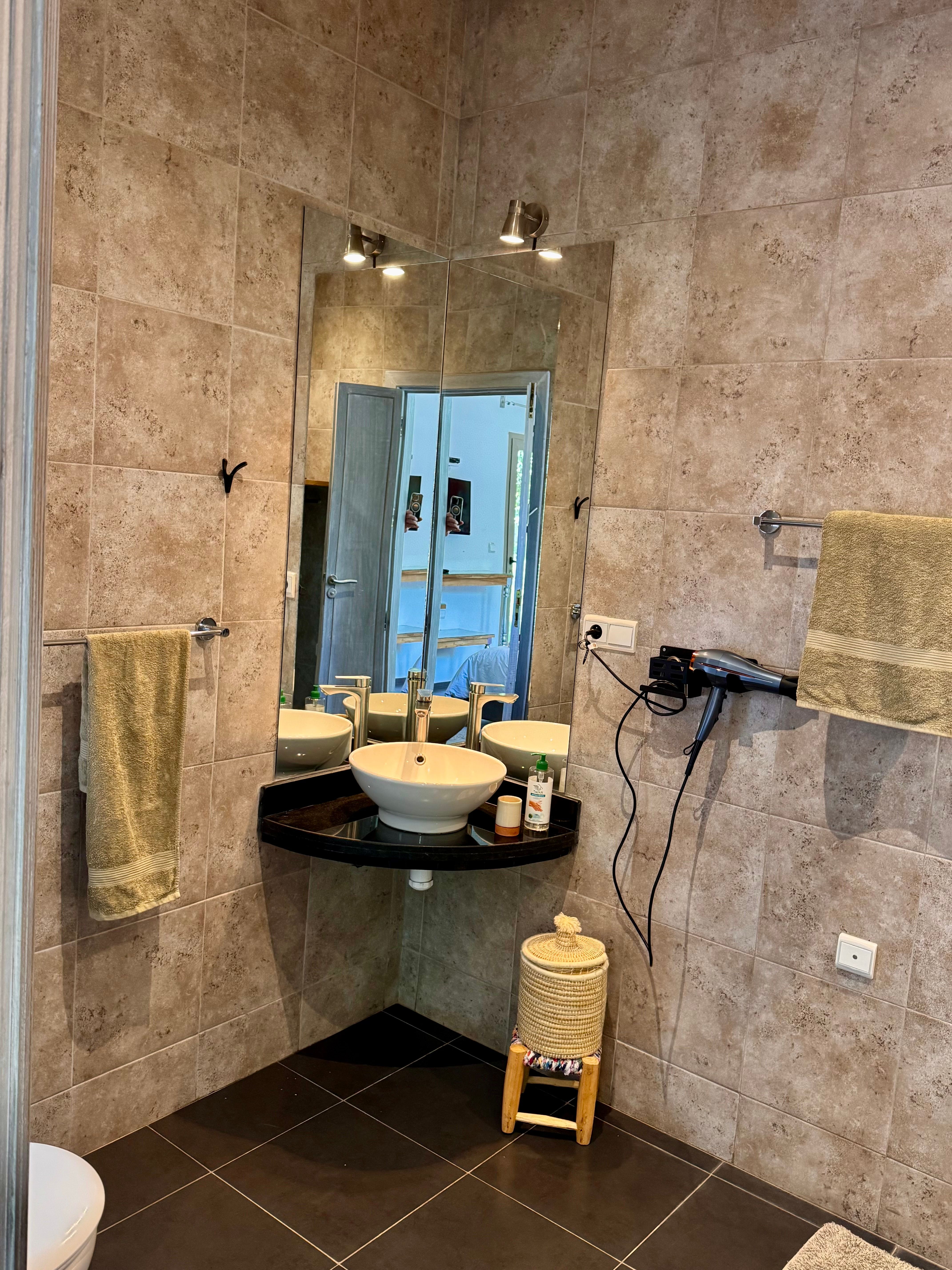 - 3 Salles de bain : douches à l'italienne, wc, serviettes de bain, sèche cheveux